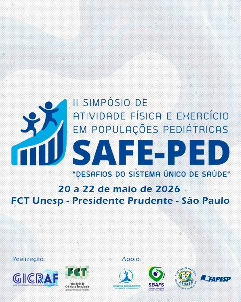Com data oficial de 20 a 22 de maio de 2026 o II Simpósio de Atividade Física e Exercício em Populações Pediátricas (SAFE-PED) “Desafios do Sistema Único de Saúde” ocorrerá nas dependências da Faculdade de Ciências e Tecnologia (FCT) da Unesp de Presidente Prudente – São Paulo.